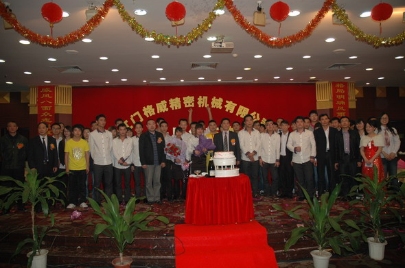 2012年3月25日是江門格威精密機械有限公司成立十周年的大喜之日,為了慶祝十年廠慶,公司組織了一系列豐富多彩的慶典活動,如出公司廠報,出畫冊,制作公司發(fā)展歷程的視頻,25日晚還組織了隆重的聚餐、娛樂表演暨2011年度優(yōu)秀員工頒獎和十年老員工頒獎活動。全廠員工歡聚一堂,在大家的歡聲笑語中,在高層領(lǐng)導(dǎo)和各位同仁的觥籌交錯中,我們的慶典活動在當晚八點鐘圓滿結(jié)束了。